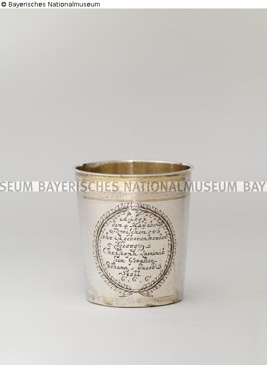 Becher mit Widmungsinschrift zur Geburt