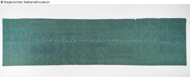 Provenienzforschung: von 'Reichsleiter' Martin Bormann (1900-1945) als Fiduziar für die NSDAP erworben: "Es wird festgestellt, dass a) die in der Anlage zur Übertragungsurkunde näher bezeichneten, bei der Treuhandverwaltung von Kulturgut in München, Arcisstrasse 10 lagernden Kunstgegenstände Eigentum der ehemaligen NSDAP und der Parteikanzlei am Obersalzberg, Berchtesgaden waren, b) diese Vermögensgegenstände laut den bei der Treuhandverwaltung von Kulturgut in München befindlichen Belegen und Rechnungsunterlagen von dem ehem. Reichsleiter der NSDAP Martin Bormann erworben wurden, dieser gleichzeitig auch Leiter der sogenannten Bormann-Verwaltung in Berchtesgaden, Franziskanerplatz 6 war, c) es sich daher nicht um Privateigentum des Martin Bormann handelt, sondern um einen Eigentumserwerb für Zwecke der NSDAP, Martin Bormann also nur als Fiduziar für die NSDAP zu betrachten ist (vgl. OMGUS Direktive und Ermächtigung der Militärregierung für Bayern - Prop. Div. vom 10.2.1949 - AG 386 - MGBP), d) die übertragenen Gegenstände somit unter die KRD 50 und das MRG 58 fallen." [Az.: VI C/III D 4516: Übertragungsurkunde Nr. 2107/V ("Kunstgegenstände der ehemaligen NSDAP und der Parteikanzlei bei der Treuhandverwaltung von Kulturgut in München, Arcisstrasse 10") vom 10.12.1956]. Eingang/Receipt (Central Collecting Point München): 19.07.1945; Ausgang/Issue (Central Collecting Point München): 10.06.1949 (Ministerpräsident)/11.03.1959 (Zentralfinanzamt München). Am 18.03.1960 über den Central Collecting Point München aus dem Besitz/der Vermögenseinziehung der NSDAP/Parteikanzlei aus ehemaligem Reichsbesitz (Treuhandverwaltung von Kulturgut) als 'Überweisung aus Staatsbesitz' aus dem Besitz des Freistaats Bayern übernommen; gemäß Entschluss des Bayerischen Staatsministeriums der Finanzen vom 23.03.1961 [Az.: 0 1481/E - 17 172 Mü 2149] dem Bayerischen Nationalmuseum endgültig zugewiesen: Nr. 25 der Übertragungsurkunde Nr. 2107/V ("Kunstgegenstände der ehemaligen NSDAP und der Parteikanzlei bei der Treuhandverwaltung von Kulturgut in München, Arcisstrasse 10") vom 10.12.1956. NSDAP-Parteibesitz: aus dem NSDAP-Textilkonvolut mit der Münchner Nummer 4729/1-7 sind dem BNM vom Freistaat Bayern folgende Objekte überwiesen worden (Münchner Nummer = BNM Inv.-Nr.): 4729/1 = 60/128, 4729/4-7 = 60/129-132. Vorprovenienz: unbekannt. Zu unbekanntem Zeitpunkt aus unbekanntem Eigentum/Besitz in NSDAP-Besitz. Aufgrund der Provenienzlücke(n) kann ein NS-verfolgungsbedingter Entzug nicht ausgeschlossen werden./A.G., 2018
