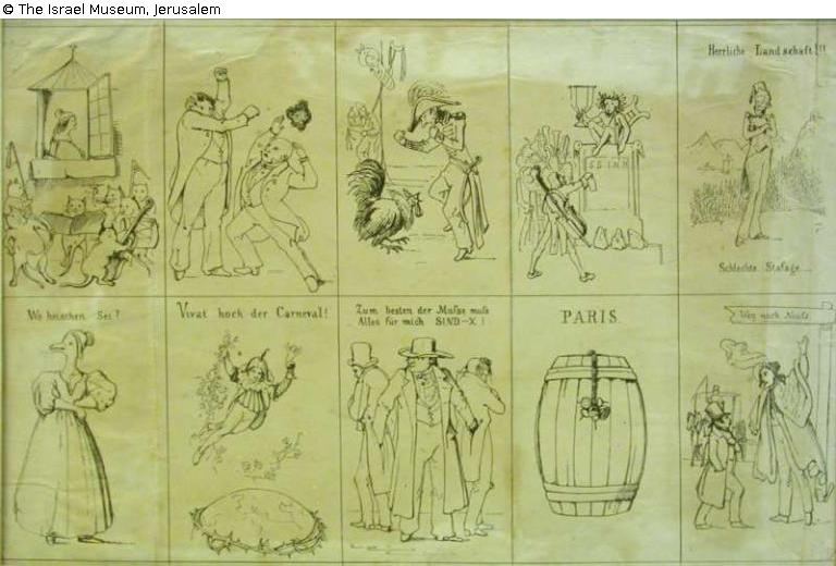 Fundmeldung | Einzelobjekt Caricatures Lost Art-ID572775 Vorherige Weiter Link to item in IMJ siteLink to the main site Hersteller/Künstler:in Unbekannt Hersteller/Künstler:in Anonymous TitelCaricatures DatierungundatedObjektartDruckgrafikObjektgruppeGrafikMaterial / TechnikLithograph on paper Höhe 25,70 cm Breite 40,00 cm InventarnummerB52.06.4025Beschreibung Object Name: Print Weiterlesen Weniger anzeigen Provenienz Received through JRSO (Jewish Restitution Successor Organization) Weiterlesen Weniger anzeigen Veröffentlicht seit10.01.2018 Kontakt Israel Museum POB 71117 9171002 Jerusalem Israel Tel972-2-6708811Fax972-2-5631833E-Mailinfo@imj.org.il Ansprechpartner:in Bareket MannPositionRegistrarE-Mailbareket@imj.org.il