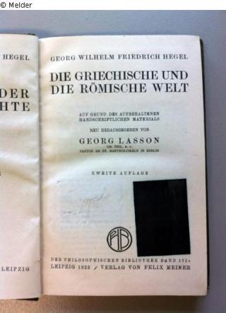 Die griechische und die römische Welt. Auf Grund des aufbehaltenen handschriftlichen Materials. (2. Auflage) Reihe: Philosophie der Weltgeschichte, Band 3. (Der philosophischen Bibliothek Band 171c.)