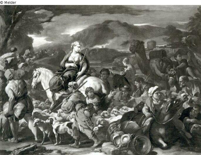 Fundmeldung | Einzelobjekt Die Reise der Rebecca nach Kanaan (ehem. als Hirtenszene) Lost Art-ID565974 Vorherige Weiter Hersteller/Künstler:in Giordano, Luca Geburt 1632 / 1634.10.18, Neapel Tod 1705.01.03 / 1705.01.12, Neapel WirkungsortNeapel; Rom; Florenz; Venedig; Bergamo; Madrid TitelDie Reise der Rebecca nach Kanaan (ehem. als Hirtenszene)ObjektartGemäldeObjektgruppeMalereiMaterial / TechnikÖl ; Leinwand / gemalt Höhe 74,50 cm Breite 101,00 cm Inventarnummermü4155Beschreibung Von rechts nach links, inmitten einer Schafherde Frau auf einem Pferd sitzend. Rechts ein Kamel. Links vorn halbnackter Träger als Rückenfigur. Hinten Landschaft mit Hügeln. Vorn rechts ruhender (?) Esel. Weiterlesen Weniger anzeigen Bestand Kulturgüter aus dem ehemaligen ReichsvermögenVeröffentlicht seit05.01.2017 Kontakt Kunstverwaltung des Bundes Herbert-Bayer-Straße 5 13086 Berlin Deutschland E-Mailprovenienzforschung@kvdb.bund.deHomepagehttp://www.kunstverwaltung.bund.de