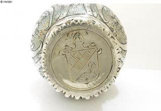 o.D./1939, Jüdischer Besitzer (unbekannt); 1939/1939-06, Städtische Darlehenanstalt, Frankfurt am Main, erworben von jüdischem Vorbesitzer (unbekannt) im Zuge der Zwangsabgabe von Edelmetallen für Juden; seit 1939-06-30, Museum für Kunsthandwerk, Frankfurt am Main (Museum Angewandte Kunst), Ankauf durch die Stadt Frankfurt am Main), Ju. 170, erworben von der Städtischen Darlehensanstalt, Frankfurt am Main [1], [1] Inventarbuch Bd. 3