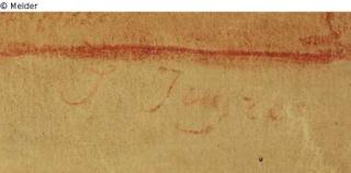 Rote Kreidezeichnung; signiert unten rechts: "J. Ingres"