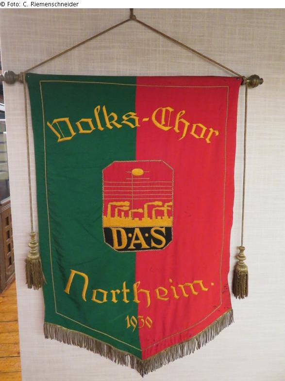 Die Provenienz der Fahne ist ungeklärt. Der Volkschor Northeim war der Gesangverein der Arbeiter in Northeim. Gegründet als Handwerkergesangverein im Jahr 1905 gewannen in den 1920er-Jahren die politisch links orientierten Arbeiter die Oberhand im Verein. Anfang der 1930er-Jahre sang der Volkschor häufig bei Veranstaltungen der örtlichen SPD. Im April 1933 versuchte der Volkschor eine ""völlige Neuorientierung"" und trat aus dem Deutschen Arbeitersängerbund aus. Die NSDAP verlangte aber darüber hinaus den Rücktritt der Chorleitung und des Vorstands, was der Verein aber ablehnte. Daraufhin löste er sich am 23.4.1933 auf (William Sheridan Allen. ""Das haben wir nicht gewollt!"". Die nationalsozialistische Machtergreifung in einer Kleinstadt 1930-1935. Güterlsoh 1966, S. 229-230)