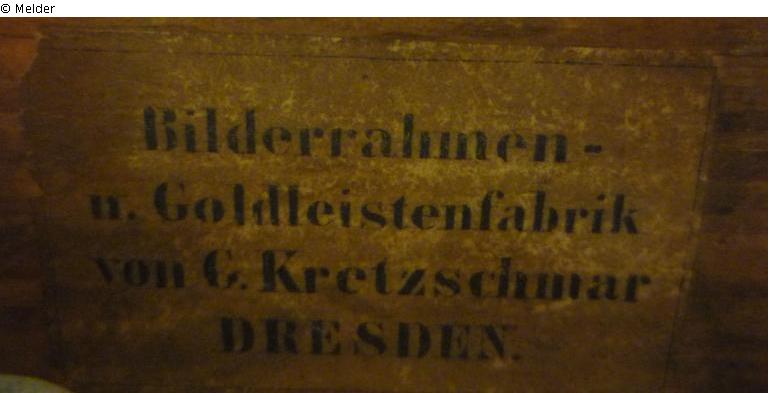 →G 1633: Zwei Reiterbildnisse Oswald August Friedrich von Fabrice: beide Gemälde entstanden im selben Jahr, wurden von Theodor Schloepke gemalt und weisen die gleichen Maße auf. Es spricht viel für die Provenienz aus ein und demselben Besitz. verso: : Aufkleber „Bilderrahmen - / u. Goldleistenfabrik / von G. Kretzschmar / DRESDEN.“