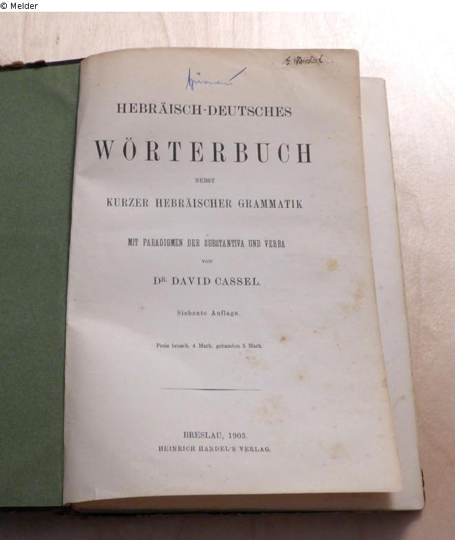 Nebst kurzer hebräischer Grammatik. Mit Paradigmen der Substantiva und Verba mit 12 Tabellen. 7. Auflage