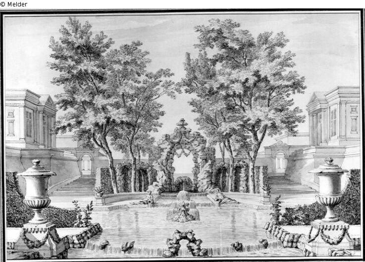 Fundmeldung | Einzelobjekt Idealer Gartenprospekt mit Wasserkunst Lost Art-ID220844 Vorherige Weiter Hersteller/Künstler:in Moucheron, Isaac de Geburt (vor) 1667.11.23, Amsterdam Tod 1744.07.20 WirkungsortRom; Amsterdam TitelIdealer Gartenprospekt mit WasserkunstObjektartZeichnungObjektgruppeGrafikMaterial / Technikgezeichnet (Feder) Höhe 22,50 cm Breite 33,00 cm Inventarnummermü9291Beschreibung Grottiertes Portal unter hohen Bäumen zwischen zwei symmetrischen, antikisierenden Villenbauten mit Treppenanlagen. Davor Fontäne und Kaskade, im Vordergrund flankiert von zwei großen Urnenvasen. Weiterlesen Weniger anzeigen Bestand Kulturgüter aus dem ehemaligen ReichsvermögenVeröffentlicht seit2001 Kontakt Kunstverwaltung des Bundes Herbert-Bayer-Straße 5 13086 Berlin Deutschland E-Mailprovenienzforschung@kvdb.bund.deHomepagehttp://www.kunstverwaltung.bund.de