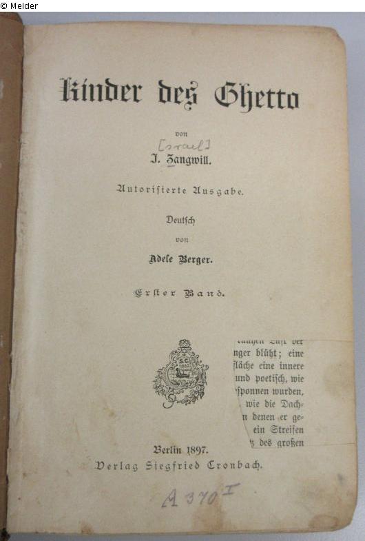 Bibliotheksgut; handschriftlicher Eintrag "Oberrat der Israelitt(!)en Karlsruhe" hinten im Spiegel des Buches, auf zwei Seiten vermutlich diejenigen Stellen herausgeschnitten auf denen der Stempel des Oberrats erkennbar war.