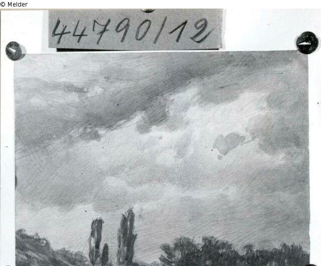 Fundmeldung | Einzelobjekt Landschaft mit zwei Pappeln Lost Art-ID219919 Vorherige Weiter Hersteller/Künstler:in Gille, Christian Friedrich Geburt 1805.03.20, Ballenstedt Tod 1899.07.09, Wahnsdorf (Kötzschenbroda) TitelLandschaft mit zwei PappelnObjektartZeichnungObjektgruppeGrafikMaterial / TechnikBleistift / gezeichnet Höhe 14,50 cm Breite 19,00 cm Inventarnummermü44790/12Beschreibung Links unten die beiden Pappeln, darüber Gewitterhimmel. Weiterlesen Weniger anzeigen Bestand Kulturgüter aus dem ehemaligen ReichsvermögenProvenienz im Februar 1943 aus dem Nachlaß von Dr. Hans Posse vom Deutschen Reich erworben Weiterlesen Weniger anzeigen Veröffentlicht seit2001 Kontakt Kunstverwaltung des Bundes Herbert-Bayer-Straße 5 13086 Berlin Deutschland E-Mailprovenienzforschung@kvdb.bund.deHomepagehttp://www.kunstverwaltung.bund.de