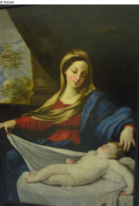 Fundmeldung | Einzelobjekt Maria enthüllt das schlafende Jesuskind Lost Art-ID521690 Vorherige Weiter Hersteller/Künstler:in Unbekannt (Kopie nach Guido Reni) TitelMaria enthüllt das schlafende Jesuskind Datierung1627 (nach)ObjektartGemäldeObjektgruppeMalereiMaterial / TechnikÖl ; Leinwand / gemalt Höhe 161,00 cm Breite 116,00 cm InventarnummerG 928Provenienz Nach 1945 sichergestellt Weiterlesen Weniger anzeigen Veröffentlicht seit26.09.2014 Kontakt Staatliche Schlösser, Gärten und Kunstsammlungen Mecklenburg-Vorpommern Staatliches Museum Schwerin Alter Garten 3 19055 Schwerin Deutschland Tel+49 (0) 385 588 47 222Fax+49 (0) 385 588 47 009E-Mailinfo@museum-schwerin.deHomepagehttp://www.museum-schwerin.de Ansprechpartner:in Dr. Pirko ZinnowPositionDirektorinE-Mailpirko.zinnow@ssgk-mv.de