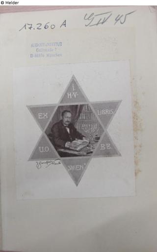 Exlibris in den Alben aus dem Offenbach Archival Depot verzeichnet: National Archives Washington, RG 260, Series: Photographs of Library Markings from Looted Books, Made by the Offenbach Archival Depot, Album I, Private Library Markings, Nr. H-87; Exlibris auch abgebildet bei Patka, Marcus G.: Die israelitischen Humanitätsvereine B’nai Brith für Österreich in der Zwischenkriegszeit und ihr Verhältnis zur „jüdischen“ Freimaurerei. In: Stern, Frank und Eichinger, Barbara (Hg.): Wien und die jüdische Erfahrung 1900-1938. Akkulturation – Antisemitismus – Zionismus. Wien/Köln/Weimar 2009, 115-129, hier 117, Abb. 1; zur Plünderung der Bibliothek: Triendl, Mirjam und Wahl, Niko: Spuren des Verlustes. Über die Arisierung des Alltags. In: „Arisierung“ von Mobilien (Veröffentlichungen der Österreichischen Historikerkommission. Vermögensentzug während der NS-Zeit sowie Rückstellungen und Entschädigungen seit 1945 in Österreich Band 15). Wien/München 2004, 253-428, hier 283.