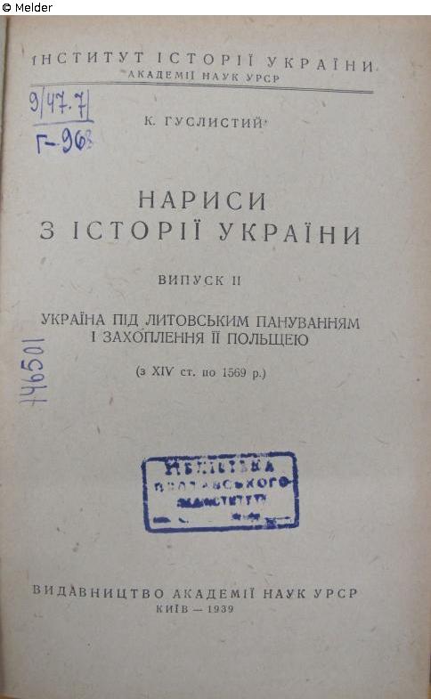 8°, im Deckel Exlibris Dr. Hans Koch, auf Schmutzblatt Vermerk Ostfeldzug 1942, auf Titelblatt Stempel des Pädagogischen Instituts in Poltava sowie Signatur 9/47.7/H-96 und 147349