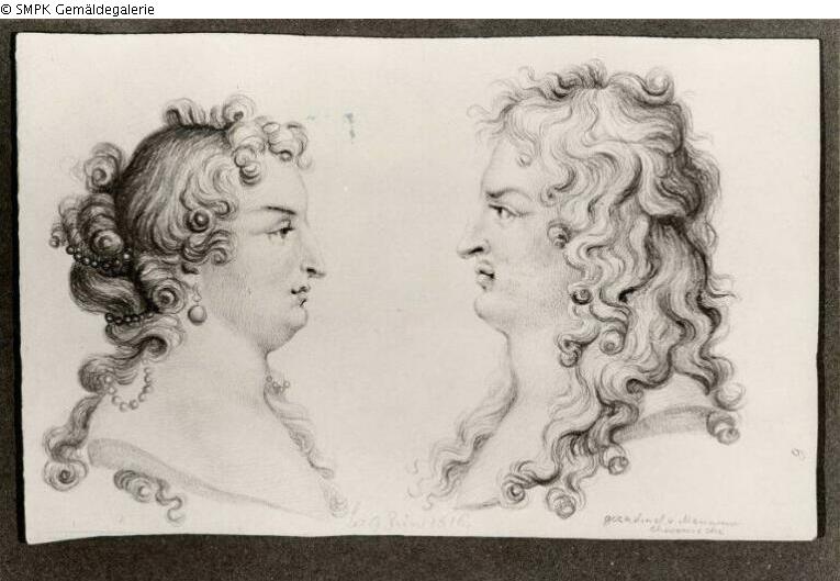 besondere Kennzeichen: Vorderseite Mi. u. Inschrift: Le 9 Juin 1816"; re.am Rand: 9; re.u.: Gezeichnet von Marianne Chodowiecki Rückseite li.o. Inschrift: Louis le grand roi de france XIVieme du.../ fil a Louis XIII A d Anne d Autriche. ne 1638./ mort 1715 ; li.Mitte Inschrift: que cette majeste me pleit: / avec l etat qui l environne/ Il se lui...decouronne/ g. Nous apprendre ce quil est. ; re.o. Inschrift: Francoise Atheneus de/...marquise de Montespan/ nee 1641 ./ morte 1707 ; li.u. Inschrift: de Grovestins