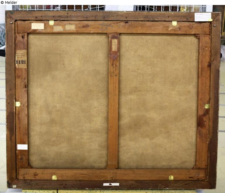 Provenienzmerkmale auf dem Keilrahmen: in blauer Wachskreide: „855 Z“ (ungedeutet); in Bleistift „90X / I0“ (ungedeutet); in blauer Wachskreide zweimal gesetzt: „22“, darunter in Bleistift „Campagna / Rom“;