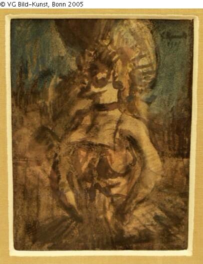 Maßangabe mit Rahmen (Sizes with frame); signiert (signature): "G.Rouault 1905"; Aufschriften und Aufkleber der Rückseite (on reverse labels): "GALERIE ARDITTI, 15, Rue Miromesnil Paris 8 e, Artiste: Georges Rouault, Titre: AQUARELLE-DANSEUSE-FILLE, Date: 1905"; "No 5863 Rouault"; mit Bleistift (with pencil): "B 5801"; Stempel (stamp): "DOUAN..." or "DOLLAN..." (?); mit Pastellstift (with pastel): "11"; mit Bleistift (with pencil): "Eigentum Flechtheim" (?); mit Pastellstift (with pastel): "DI"