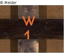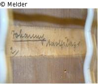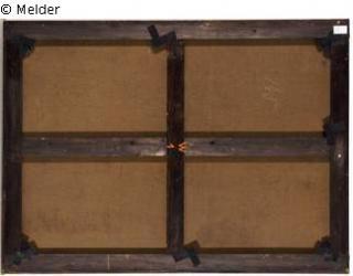 Dieser Aufkleber steht jedoch nicht im Zusammenhang mit dem Gemälde, da der Rahmen im Jahr 1988 dem Gemälde in Zweitverwendung gegeben worden ist.