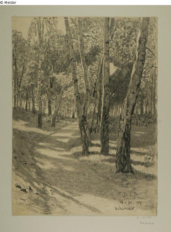 Weg in lichtem Birkenwald