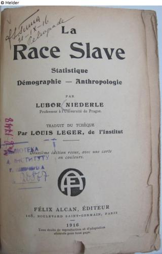 Fundmeldung La race slave. Statistique - démographie - anthropologie Autor:in Lubor Niederle Verlag Alcan Objektart Buch Lost Art-ID623436