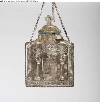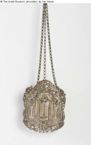 Fundmeldung Torah shield Hersteller/Künstler:in Becker, Fridericus senior Objektart Kunsthandwerk / -gewerbe Material / TechnikSilver / repoussé, cut, engraved, cast, and partly giltLost Art-ID573060