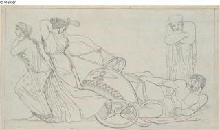 Fundmeldung Zwei Frauen ziehen Kampfwagen Hersteller/Künstler:in Flaxman, John Objektart Zeichnung Material / TechnikPapier ; Tusche schwarz / gezeichnet (Feder)Lost Art-ID596299
