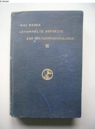 Fundmeldung Gesammelte Aufsätze zur Religionssoziologie. Band III: Das antike Judentum. (2., photo-mechanisch gedruckte Auflage) Autor:in Weber, Max Verlag J. C. B. Mohr (Paul Siebeck) Objektart Buch Lost Art-ID460037