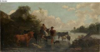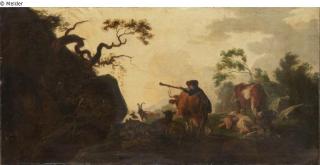 Fundmeldung Hirt mit Herde Der Mittag Hersteller/Künstler:in Kobell, Ferdinand Objektart Gemälde Material / TechnikÖl ; Leinwand / gemaltLost Art-ID606808
