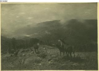 Suchmeldung Herbstmorgen im Walde mit röhrendem Hirsch Hersteller/Künstler:in Kröner, Christian Objektart Malerei Material / TechnikWasserfarbe / aquarelliertLost Art-ID138006
