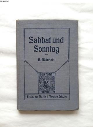 Fundmeldung Sabbat und Sonntag. Reihe: Wissenschaft und Bildung. Einzeldarstellungen aus allen Gebieten des Wissens, Band 45 Autor:in Meinhold, Hans Verlag Quelle & Meyer Objektart Buch Lost Art-ID520850