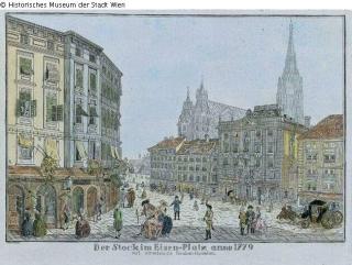 Fundmeldung Der Stock im Eisen-Platz, 1779 Hersteller/Künstler:in Ritter von Bensa, Alexander Objektart Druckgrafik Material / Technikgedruckt (Kupferstich) ; koloriertLost Art-ID240203