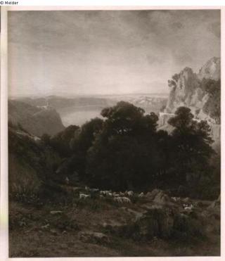 Fundmeldung Italienische Landschaft mit See und Ziegenherde im Vordergrund Hersteller/Künstler:in Rodde, Carl Gustav Objektart Gemälde Material / TechnikÖl ; Leinwand / gemaltLost Art-ID531400