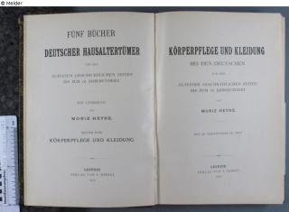 Fundmeldung Körperpflege und Kleidung bei den Deutschen von den ältesten geschichtlichen Zeiten bis zum 16. Jahrhundert Bd. 3 der Fünf Bücher deutscher Hausaltertümer Autor:in Moritz Heyne Verlag S. Hirzel Objektart Bibliotheksgut Lost Art-ID622782