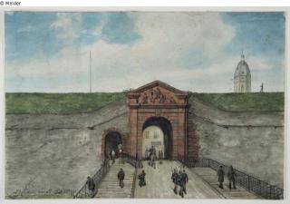 Fundmeldung Das Gautor von der Landseite Hersteller/Künstler:in Schmitt, Stephan Objektart Aquarell Material / TechnikWasserfarbe ; Pappe / aquarelliert ; gezeichnet (Feder)Lost Art-ID318962