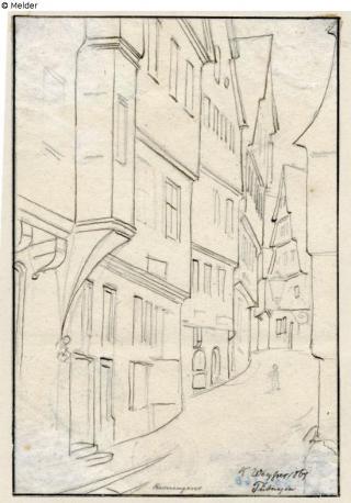 Fundmeldung Kronengasse (unvollendet) Hersteller/Künstler:in Weysser, Karl Objektart Zeichnung Material / TechnikTinte ; Papier ; Pappe / gezeichnet (Feder)Lost Art-ID578076
