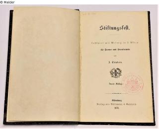 Fundmeldung Stiftungsfest. Lustspiel mit Gesang in 3 Akten für Turner und Turnfreunde Autor:in Johannes Töpken Verlag Bültmann & Gerriets Objektart Buch Lost Art-ID592718