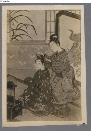 Suchmeldung Mädchen bei der Toilette Hersteller/Künstler:in Susuki Harunobu Objektart Druckgrafik Material / Technikgedruckt (Holzschnitt) mehrfarbigLost Art-ID622242