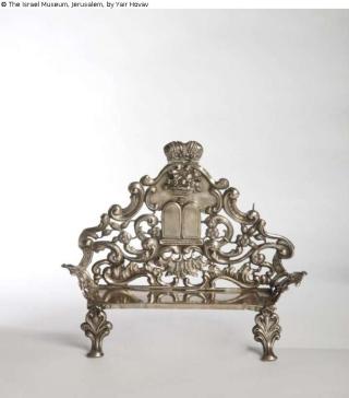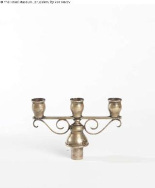 Fundmeldung Hanukkah lamp (upper part, designed to be mounted on a stem) Objektart Beleuchtung Material / TechnikBrass / cast, and brass sheet, repoussé and silver-platedLost Art-ID573424