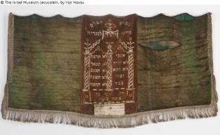 Fundmeldung Torah ark curtain Objektart Kunsthandwerk / -gewerbe Material / TechnikSatin silk, silk velvet appliqué with couched gilt metal...Lost Art-ID572872