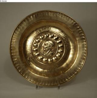 Fundmeldung Platte Hersteller/Künstler:in Unbekannt (Nürnberg) Objektart Kunsthandwerk / -gewerbe Material / TechnikMetall (Messing) / getriebenLost Art-ID590413