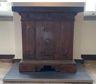 Fundmeldung Halbhoher Kastenschrank Hersteller/Künstler:in Unbekannt Objektart Möbel Material / TechnikHolz (Nussbaum) ; Metall (Bronze)Lost Art-ID623237