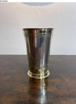 Fundmeldung Becher mit Schlangenhautdekor Hersteller/Künstler:in Unbekannt Objektart Gefäß Material / TechnikMetall (Silber) / getrieben ; punziert ; vergoldetLost Art-ID623249