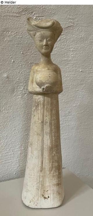 Fundmeldung Weibliche Statuette, ein kugeliges Gefäß in Händen haltend (Grabfigur) Hersteller/Künstler:in Unbekannt Objektart Kleinkunst Material / TechnikKeramik (Irdenware) ; GlasurLost Art-ID623250