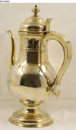 Fundmeldung Abendmahlskanne auch als Kaffeekanne bezeichnet Hersteller/Künstler:in Hestermann, Johann Hinrich Objektart Gefäß Material / TechnikMetall (Silber) ; Metall (Gold) / gegossen ; montiert...Lost Art-ID626413