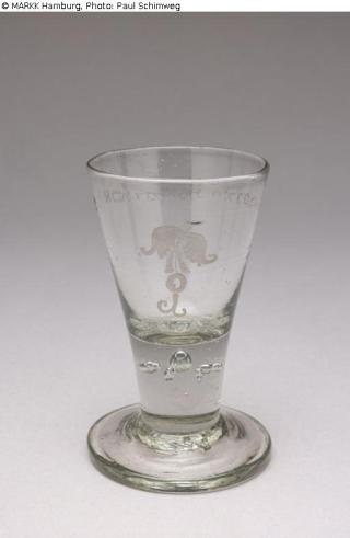 Fundmeldung Spitzglas mit hebräischer Inschrift Hersteller/Künstler:in Unbekannt Objektart Gefäß Material / TechnikGlas (Mattglas) / geschnittenLost Art-ID626360