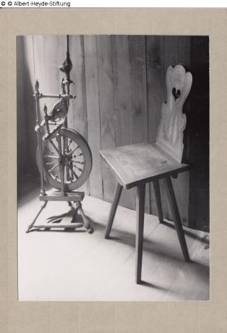 Suchmeldung Stuhl Bretterstuhl und Spinnrad im Heimatmuseum Lübben Hersteller/Künstler:in Unbekannt Objektart Möbel Material / TechnikHolz / gefasstLost Art-ID629762
