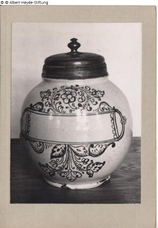 Suchmeldung Apothekengefäß Hersteller/Künstler:in Unbekannt Objektart Gefäß Material / TechnikGlasur (Fayence) ; Metall (Zinn)Lost Art-ID629777