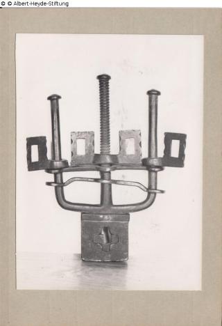 Suchmeldung Daumenschraube Gerät unbekannter Zweckbestimmung Hersteller/Künstler:in Unbekannt Objektart Kunsthandwerk / -gewerbe Material / TechnikMetall (Schmiedeeisen)Lost Art-ID629788