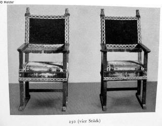 Suchmeldung Vier Renaissance-Armlehnsessel mit rotem Samtbezug Hersteller/Künstler:in Unbekannt (Italienisch) Objektart Möbel Material / TechnikHolz (Nussbaum)Lost Art-ID415020