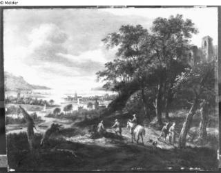 Fundmeldung Landschaft mit Staffage Hersteller/Künstler:in Verburgh, Dionijs Objektart Gemälde Material / TechnikÖl ; Holz / gemaltLost Art-ID244990