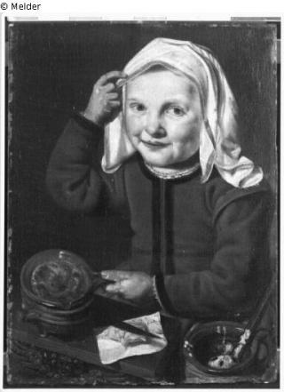 Fundmeldung Mädchen, einen Fladen backend Hersteller/Künstler:in Woutersz, Jan (?) Objektart Gemälde Material / TechnikÖl ; Holz / gemaltLost Art-ID244989