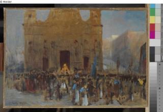 Fundmeldung Prozession vor San Pietro, Frascati Hersteller/Künstler:in Kolitz, Louis Objektart Gemälde Material / TechnikÖl ; Papier ; Pappe / gemalt ; aufgezogenLost Art-ID596120
